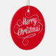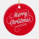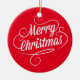 Este ornamento com texto branco alegre do Feliz Natal no vermelho é perfeito para a decoração do feriado.
