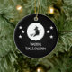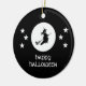 Faça um feitiço com este encantador, mas simples Ornamento do Dia das Bruxas, apresentando uma lua de cheio e estrelas atrás de uma bruxa voadora. Este ornamento divertido do Dia das Bruxas seria um item mágico de decoração ou guarda. Fácil de personalizar, basta adicionar seu próprio texto nos campos fornecidos. As fontes e as cores do texto podem ser alteradas clicando-se no botão "Personalizar".