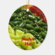 Este ornamento é decorado com nossa fotografia original de pimentas da malagueta picante. Pimentas vermelhas, verdes, e amarelas coloridas. Este é um presente agradável para um professor, mãe, baby-sitter - qualquer um que ama o © picante Alan 2013 & Marcia Socolik da comida… todos os direitos reservados