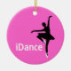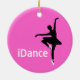 Uma silhueta preta de um dançarino de balé junto com o texto branco - iDance em um fundo cor-de-rosa. (Tipo como dos outros iProducts para fora lá!)
