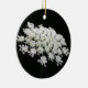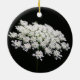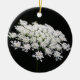 Este ornamet caracteriza a flor branca delicada da cenoura selvagem, (carota do Daucus), chamada geralmente laço de Rainha Anne em um fundo preto. O laço da rainha Anne simboliza um abrigo ou um santuário. Deixe a natureza decorar seus árvore ou presentes de época natalícia! Os ornamento igualmente fazem grandes trações do fã ou da lâmpada. Pode adicionar um toque original às partes traseiras do laço da cortina, ou mesmo usam-se como decorações da parede.