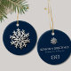 Eleve seu espírito de feriado corporativo com nosso Ornamento de Floco de Neve de Alegria de Férias Personalizadas. Este adorno requintado apresenta um elegante design floco de neve, com um floco de neve metálico escovado adorando um rico fundo azul marinho. A frente oferece um toque sofisticado, enquanto a parte de trás apresenta um floco de neve ao lado das mensagens sentidas "Saudações da Época" e "Desejar sua alegria de Natal". Perfeito para empresas e corporações, este ornamento captura a essência da estação enquanto mostra sua marca. Mantenha-o orgulhoso como um ornamento de árvore ou enfeite seu espaço de escritório com sua elegância refinada. Torne as suas comemorações de férias memoráveis com este ornamento distinto e personalizado.