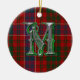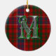 Ornamentado monograma com ornamento M, com a tradicional xadrez de tartan do clã MacRae vermelha, azul, verde e branca como fundo. ornamento familiar de herança de excelente. Faz um enfeite e decoração de presente de excelente para outros usos na casa.