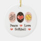 Símbolo de paz bonito, coração e softball amarelo no marrom cor-de-rosa e escuro no roupa do softball, a roupa, os artigos de papelaria e os mais artigos que fazem meninas bonitos jogador de softball, equipe do softball, treinador do softball, a mamã futura do jogador de softball ou do softball e o presente do pai.