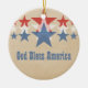 Diversão e na moda Red, White e Blue Star Cascade Ornament para Dia da Independência de dois lados, com um fundo de papel texturizado falso e linhas descentes de estrelas vermelhas, brancas e azuis. Este ornamento único é uma maneira perfeita de mostrar seu orgulho americano em 4 de julho! Fácil de personalizar, basta adicionar seu próprio texto no espaço fornecido. Esta design é também excelente para o Dia do Memorial como uma maravilhosa manutenção ou decoração!