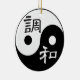 Os personagens chineses para equilíbrio e harmonia com um clássico yinyang aprecia este adorável ornamento de feriado. Este é um excelente presente para aqueles que querem celebrar o espírito de férias, mas podem não ser cristãos.