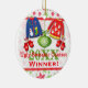 Seu partido festivo e da camisola feia do Natal ou do feriado do divertimento estará mais completo com este ornamento cerâmico personalizado como um prêmio para o vencedor da competição feia da camisola. As duas camisolas foleiros saltam fora do vermelho e os flocos de neve verdes modelam o fundo com um ornamento verde de suspensão, os dois pares de mitenes, um boneco de neve, o bastão de doces, a meia e as cabeças do papai noel. Apenas adicione o ano na caixa de texto fornecida ou personalize-o como você quer. Se você precisa alguma ajuda que personaliza este ornamento cómico para seu partido, envie por correio electrónico niteowlstudio@gmail.com.