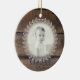 Este ornamento feito sob encomenda rústico lindo da foto caracteriza um fundo de madeira recuperado rústico, com uma grinalda bonita do estilo da casa da quinta que cerca toda a foto feita sob encomenda de sua escolha. Duas linhas do texto na parte inferior permitem o espaço para o nome, a data, ou a mensagem de sua escolha.