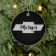 Um ornamento de chevy redondo preto com Michael nele.
