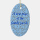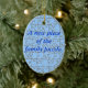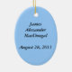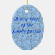 Ornamento oval azul para comemorar o nascimento/adopção do membro masculino novo da família. Partes da serra de vaivém com texto "uma parte nova do quebra-cabeça da família." No verso personalize com nome da criança e data do nascimento/adopção, etc.=