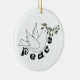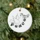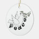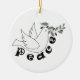 Um ornamento personalizado da paz que inclui uma pomba com um ramo de oliveira e a palavra Paz ao longo do peito da pomba, com o sinal de paz dos 60 anos.