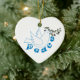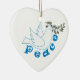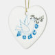 Um ornamento personalizado da paz que inclui uma pomba com um ramo de oliveira e a palavra Paz ao longo do peito da pomba, com o sinal de paz dos 60 anos.