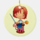 De Cerâmica Ornamento Sewing da menina