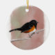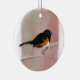 Uma ponta pontilhada sobre um galho contra um fundo avermelhado