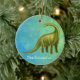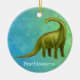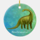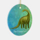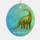 O design original das belas artes de um dinossauro verde do Brachiosaurus pelo artista Carolyn McFann do estúdio de ronrom de dois gatos imprimiu em uma qualidade e facilmente em uns enfeites de natal customizáveis. Grande ideia do presente para aniversários, feriados ou alguma ocasião para miúdos aos adultos!