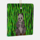 Desenho de um panda sentado cercado por bambu.