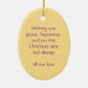 Decoração festiva do Natal do anjo. Ornamento da lembrança a pendurar em sua árvore. A mensagem simples no reverso lê o "desejo lhe da paz, da felicidade e da alegria este tempo do Natal e sempre todo nosso amor. Projetado excepcionalmente por Sarah Trett.