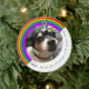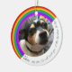 Um quadro fotográfico arco-íris com espaço para escrever uma mensagem especial, assim como adicionar detalhes e uma foto adicional na parte de trás do ornamento. No tema da Ponte Arco-Íris e perda de animais de estimação. Design by Night Owl's Menagerie, 2023.