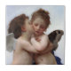O presente perfeito para amantes da arte clássica do anjo este azulejo bonito caracteriza o trabalho do pintor francês William-Adolphe Bouguereau (1825 - 1905). O óleo original na pintura das canvas mostra dois anjos cherubic que beijam e é sabido às vezes como "o primeiro beijo," "Amor e psique" ou "Cupido e psique." O azulejo que pode igualmente ser usado porque um trivet da cozinha seria o presente perfeito para amantes da arte clássica, dos anjos e da mitologia.