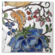 Um mural de fantasia para sua decoração, com coelho brando, pássaros e flores coloridas inspiradas por Jacobean! O fundo é branco. Este mural de azulejo consiste em oito azulejos, disponíveis em 4 tamanhos de 1/4" e 6". O mural montado no azulejo de 4 1/4" mede 8 1/2" x 13" mais linhas de caldas. O mural montado com azulejo de 6" mede 12" x 18" mais linhas de caldas de injeção. Esta peça está do lado direito, linha 2. Os azulejos são vendidos individualmente. Use um caldo não arejado e evite esfregar com abrasivos. Arte original e design de Tuzi Williams.
