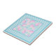 Um Azulejo cerâmico bonito, com um padrão de rosas cor-de-rosa sobre um fundo azul-céu, pontilhado com borboletas brancas dentro de uma fronteira de Sky Blue e White Check Gingham. Adicione uma moldura de madeira para fazer uma trivialidade útil e decorativa!
