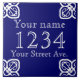 Sinal de estilo de azulejo espanhol com nome de família e nome de rua opcionais. Todas as cores podem ser personalizadas para corresponder à sua casa ou negócio.
