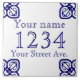 Sinal de estilo de azulejo espanhol com nome de família e nome de rua opcionais. Todas as cores podem ser personalizadas para corresponder à sua casa ou negócio.