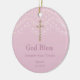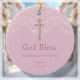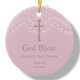 Celebre o momento especial do batismo do seu pequeno com o nosso belo batismo rosa-rosa, mantendo o ornamento cerâmico. Apresentando um impressionante crucifixo dourado e delicado efeito de renda em um fundo rosado empoeirado, este ornamento é uma forma perfeita de comemorar o dia especial. Está pronta para uma personalização fácil com o nome do seu filho e a data do batismo. Esta manutenção será preciosa durante anos e é uma forma significativa de lembrar o batismo do seu filho.