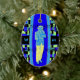 Um trombonista, vestido em vintage Rag Time jazz, toca seu trombone. O fundo colorido é uma combinação de preto, azul brilhante e verde. As notas de música flutuam no topo da design. Você quase pode imaginar a animada música Dixie Land tocando. Existem modelos para as iniciais e o design é o mesmo em ambos os lados. O amante da música na sua vida vai adorar este adorável ornamento único e divertido. É perfeito para doar a qualquer momento.