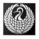 Uma grua branca estilizada sobre fundo preto. A palavra japonesa para o guindaste é o suru, que é um símbolo da longevidade e da boa sorte para os japoneses