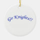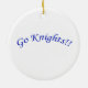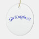 Vão Cavaleiros!! em texto azul curvo. Cores e estilos de fundo adicionais disponíveis (mostrados com fundo branco, estilo redondo). Personalizável.