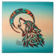 Brilhe a sua casa com este Azulejo Tribal Wolf Cerâmico "Um de um Tipo"! Ele apresenta um Lobo Tribal Americano Nativo a Uivar na Lua em um Fundo Turquesa e Laranja! Este é um Design de Arte Original "Um dos Tipos" do Artista Kerry Miller.