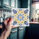 Add a splash of Mediterranean sunshine to your home with our Golden Fleur-de-Lis Azulejo Tile Print. This exquisite piece captures the vibrant beauty and intricate designs of the iconic Portuguese azulejos. The bold golden yellow and rich royal blue hues are accented by delicate touches of white and orange, creating a warm and inviting ambiance. While it maintains the look of traditional tilework, this print is crafted without the physical relief or bevel for ease of installation. It's a stunning way to bring historic elegance to any room, functioning beautifully as a backsplash, a statement piece, or a unique coaster for your living space.