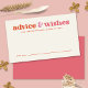 Crie uma manutenção memorável para o Formando com esses Boho Retro Graduation Advice and Wish Cards. Esses cartões podem ser incluídos no seu Anúncio de graduação ou Convite de festas, ou podem ser disponibilizados na festa para os convidados preencherem. Estas placas de conselho apresentam a tipografia de vintagem retrorativa e uma paleta cor rosa e laranja. A parte de trás é a vazio de que haja mais espaço para escrever ou você pode personalizar a parte de trás clicando no botão "Editar usando a ferramenta Design".