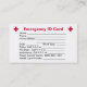 Cartão da identificação da emergência