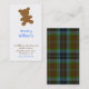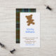 Crianças feitas sob encomenda que chamam/cartão data do jogo. Uma silhueta marrom simples de um urso de ursinho decora a parte superior da xadrez marrom e azul do cartão e de um tartan bonito na parte traseira. Personalize o texto, com informação da sua criança. Faz grandes cartões para arranjar festas de aniversário e o jogo data com outras mães.