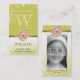 As famílias cor-de-rosa no selo do dever com o floral na fita verde & branca do fundo e do ouro aparam. Inicial, nomes, número de telefone & email personalizados.