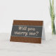 Esta design de casamento de proposta de apresenta cores rústicas como marrom, cinza e bege, na frente, junto com a importante pergunta, "Você vai me casado?". O dentro contém uma mensagem personalizada.