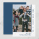 Cartão com fotos simples do feriado da linha ano novo com uma linha moderna minimalista design da beira da foto no azul. Adicione uma foto e um cumprimento personalizado para personalizar.