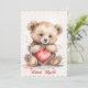 Cartão do Dia dos Namorados com Urso, segurando um coração vermelho e texto personalizado. Personalizado com nome e texto.
