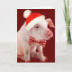 O sibilo do Potbelly do bebê que veste o chapéu do papai noel traz o cumprimento do Natal, "OINK." PetVentures, um de um tipo, cartão para os feriados.