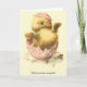 Cartão húngaro retro/do vintage páscoa. Pintinho do bebê que choca de um ovo da páscoa! Ünnepeket de Kellemes Húsvéti! Felz pascoa!