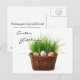 A design de felz pascoa mostra um cheio de cesto de ovos e grama. A imagem está disponível para vários produtos. A adição de texto é opcional.