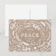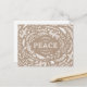 Um cartão postal moderno e bonito apresenta uma ou várias fronteiras rústicas e balcões e deixa a palavra Paz em volta de um fundo de papel kraft falso. Clique em Personalizar para adicionar seu próprio texto e fotos personalizados na parte traseira do cartão ou deixe o vazio para adicionar uma mensagem manuscrita para familiares e amigos.