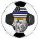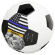 Bola de futebol Patriótica Thin Blue Line com bandeira americana - forças policiais / design da polícia com mensagens facilmente personalizadas, sua foto e fotos opcionais de um ou dois lados simplesmente acrescentadas usando um botão personalizado (ative fotos em edição, se quiser usar).