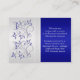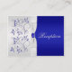 Este cartão azul real floral e prateado corresponde ao convite de casamento e a outros itens mostrados abaixo. Você também pode personalizá-lo para ser um mapa e/ou um cartão de instruções.