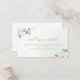 A moderna cor aquática branca floral eucalipto verde floral verde e tendência de cor dourada "visite nosso site" em fundo verde poeirento, com monograma de casal no verso, elegante e na moda, o site de casamento do excelente insere cartão para casamento rústico, casamento botânico e casamento de praia no primavera e verão. Ver todas as peças correspondentes na coleção