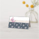 Cartão de lugar floral romeno azul-marinho e borboletas rosa