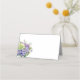 Este cartão de lugar dobrado é mostrado em branco básico com uma adorável hydrangea roxa e impressão de arte rosa. Personalize este item ou exatamente como está e escreva o nome manualmente.