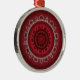 Um fractal circular ornamentado de vermelho profundo e prata, como uma coroa cheia de joias.